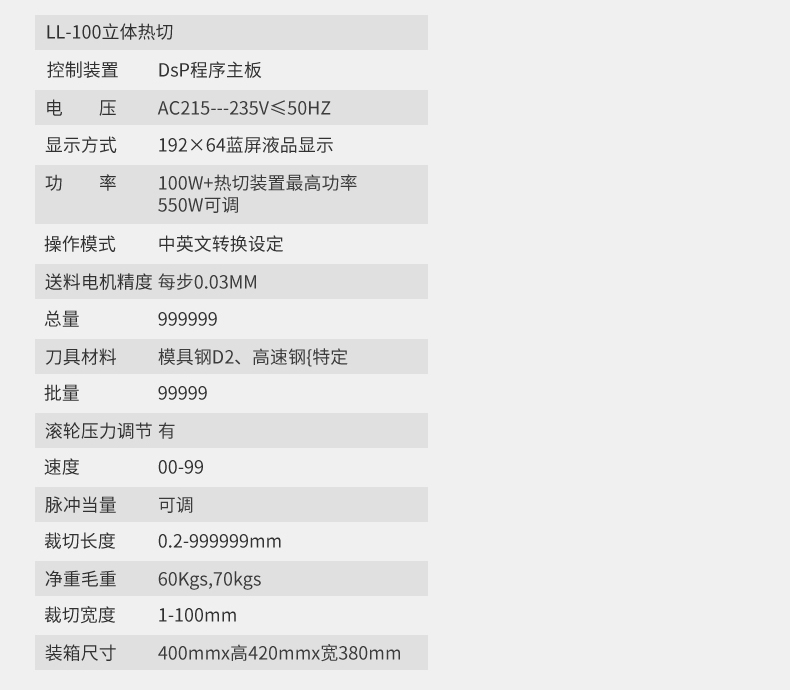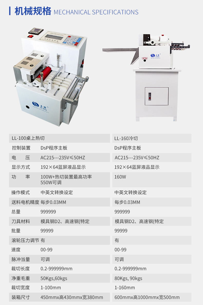 LL-100桌上全數(shù)字智能切斷機(熱切型)/(冷切型) 產(chǎn)品說明: 本機采用全數(shù)字智能控制裝置,按鍵操作,同時可任意設定切斷長度/數(shù)量、送料速度、且裁切精度準確、耗損少、機型設計符合人體工學原理操作簡單,廣泛適用于織帶、拉鏈、...